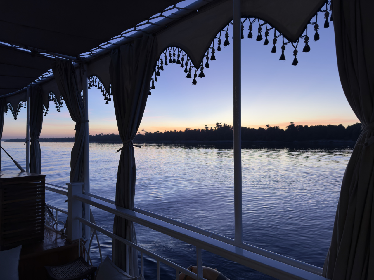 Da ist ein Moment kurz vor Sonnenaufgang, wenn der Nil den Atem anhält. Das Wasser ist still, die Palmen stehen wie Silhouetten vor einem violetten Himmel, und die Luft fühlt sich kühl und unglaublich frisch an. So beginnt ein Tag auf einer Dahabiya; nicht mit Weckern, Menschenmassen oder Motoren, sondern mit Stille. Mit Raum. Mit dem sanften Einbruch des Morgenlichts.
