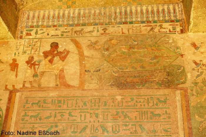 Auch nach mehr als 3000 Jahren erstrahlen die Wandmalereien in den Gräbern der ägyptischen Oberschicht noch in ihrer alten Farbigkeit. Ganz im Gegensatz zu den Darstellungen in den weitaus bekannteren Gräbern im Tal der Könige zeigen diese jedoch nicht nur Szenen aus dem Jenseits, sondern v.a. auch aus dem Diesseits. Sie bilden das rege Treiben…