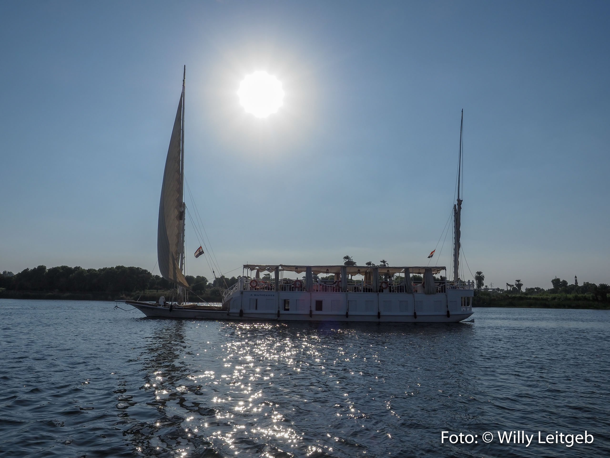 Nilkreuzfahrten Dahabeya ABUNDANCE - Sail the Nile - Dahabiya im Sonnenlicht