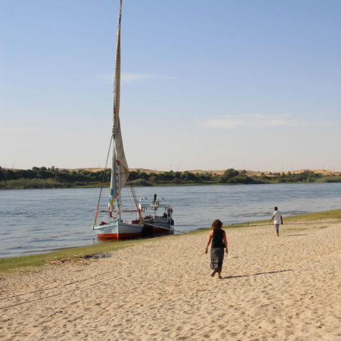 Eine Felukka ist ein einfaches, traditionelles Segelboot, wie man es seit Jahrtausenden auf dem Nil findet. Sie hat keinen Motor und braucht den Wind.