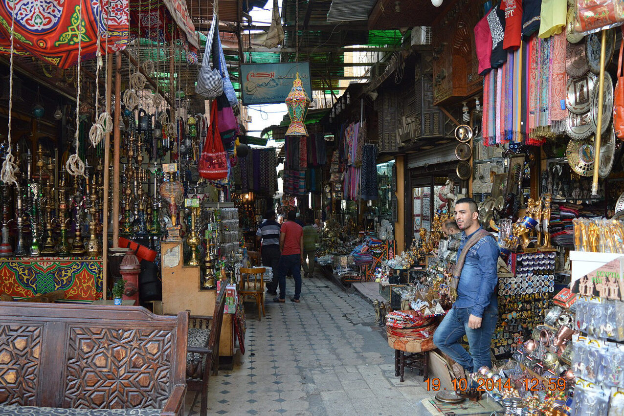 Foto eines traditionellen Ladens im Basar Khan al-Khalili in Kairo. Foto von Sara el-Sharkawy, über Wikimedia Commons (CC BY-SA 4.0).